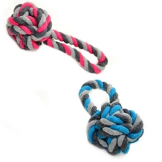 Zabawka piłka z plecionego sznura z uchwytem 9cm Duvo+