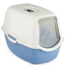 Toaleta Savic Nestor - kryta kuweta dla kota z wygodnymi drzwiczkami biało-niebieska