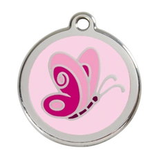 Adresówka dla psa duża - okrągła zawieszka MOTYL różowa - Red Dingo