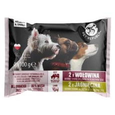 Pet Republic siekana jagnięcina, wołowina w sosie - karma dla psów małych ras 4x100g