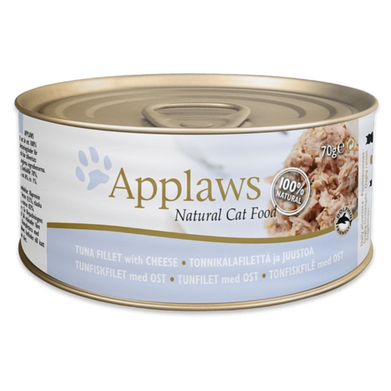 Karma dla dorosłych kotów zawierająca kawałki tuńczyka w delikatnym bulionie wzbogacone serem. Karmy Applaws to w pełni naturalny i zdrowy pokarm. Stanowi doskonałe, smaczne uzupełnienie dla karmy suchej.