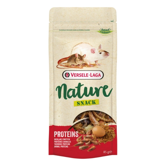 Mieszanka przysmaków dla gryzoni i innych małych ssaków, które w swojej diecie powinny znajdować produkty pochodzenia zwierzęcego. Skorupiaki, insekty, jaja i produkty z jaj oraz mięso i produkty pochodzenia zwierzęcego są bogatym źródłem białka. Versele-Laga Nature Snack Proteins to doskonałe uzupełnienie codziennej diety gryzoni.