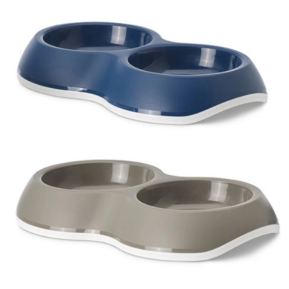 - Plastikowa podwójna miska dla psów i kotów o pojemności 2 x 200 ml
