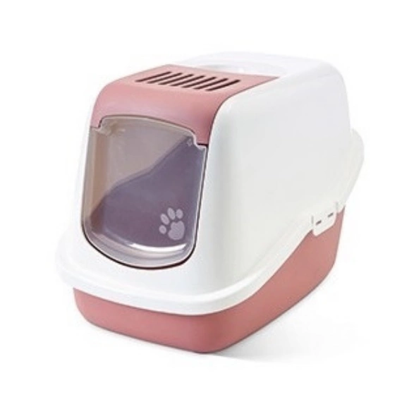 Toaleta Savic Nestor - kryta kuweta dla kota z wygodnymi drzwiczkami pastelowo różowa