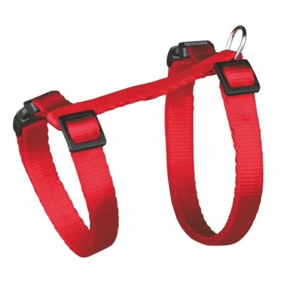 Wykonane z taśmy nylonowej szelki dla kota. Szelki posiadają regulowany obwód, dzięki czemu są odpowiednie dla większości dorosłych kotów (dla kotów ras dużych, takich jak main coon lub szczególnie dużych kotów zalecane jest kupienie szelek przeznaczonych dla dużych kotów).