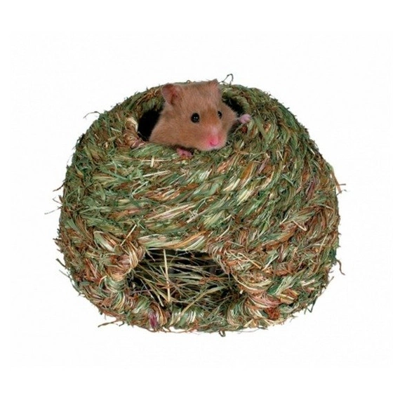 Gniazdo wykonane w 100% z naturalnych materiałów. Doskonała kryjówka dla chomika lub myszki. Posiada otwory, które pozwalają na wygodne wchodzenie do środka i wyjście inną drogą. Gniazdko zaspokaja naturalna potrzebę małego gryzonia ukrycia się. Gwarantuje niedużą, bezpieczną przestrzeń.