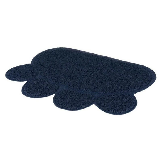 Mata pod kuwetę o wymiarach 60 na 45 cm, w kształcie łapy. Wykonana z PCV w kolorze granatowym. Spód maty z powłoką antypoślizgową.