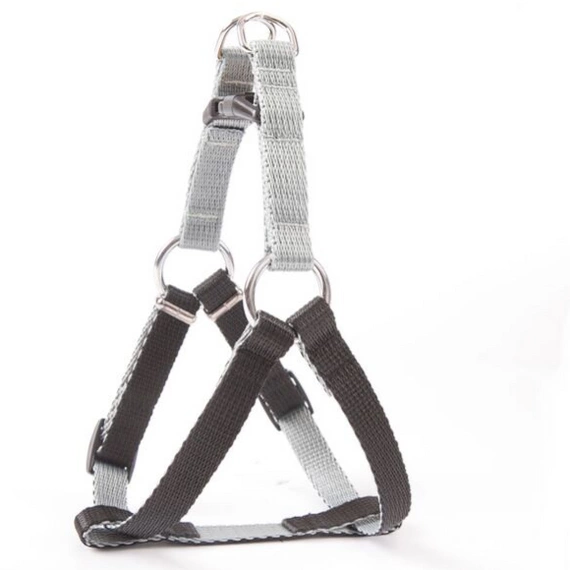 - Szelki regulowane z pojedynczej taśmy polipropylenowej. Jedna strona tkana z kolorowej przędzą, druga szarym odcieniem.