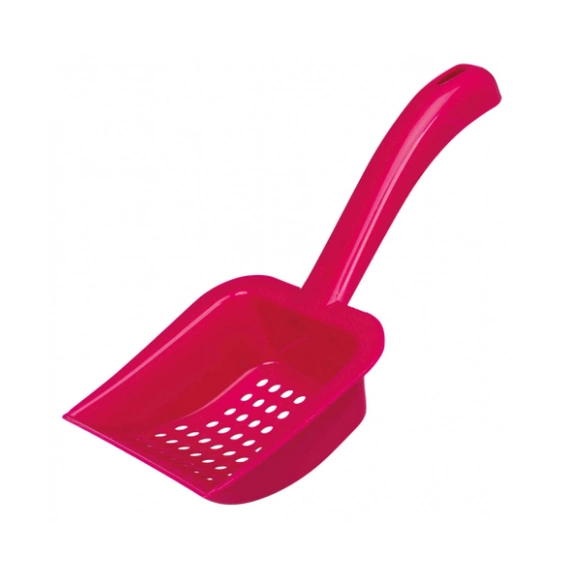 Duża łopatka do sprzątania nieczystości z kociej kuwety. Głęboka, z okrągłymi otworami.