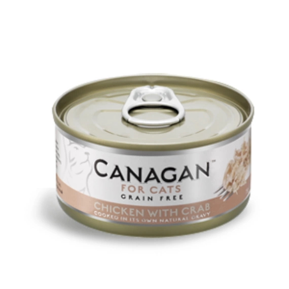 - Karma Canagan to rozdrobniony, świeży filet z kurczaka, z dodatkiem delikatnego mięsa z kraba w aromatycznym mięsnym wywarze. Polecana dla kotów wszystkich ras i w każdym wieku. Karma nie zawiera zbóż.