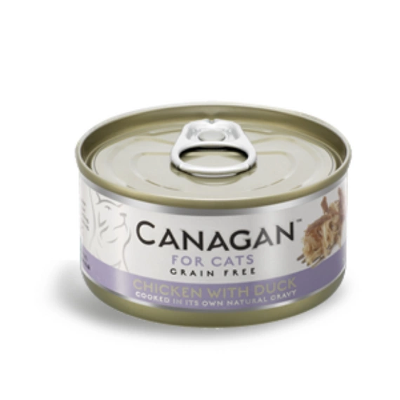 - Karma Canagan to rozdrobnione mięso z kurczaka, z dodatkiem aromatycznego mięsa z kaczki w aromatycznym mięsnym wywarze. Polecana dla kotów wszystkich ras i w każdym wieku. Karma nie zawiera zbóż.