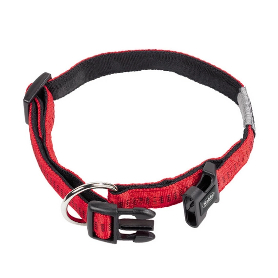 Obroża dla psa wykonana z dwóch miękkich taśm nylonowych zszytych ze sobą, by zapewnić wyjątkową wytrzymałość produktu podczas użytkowania.