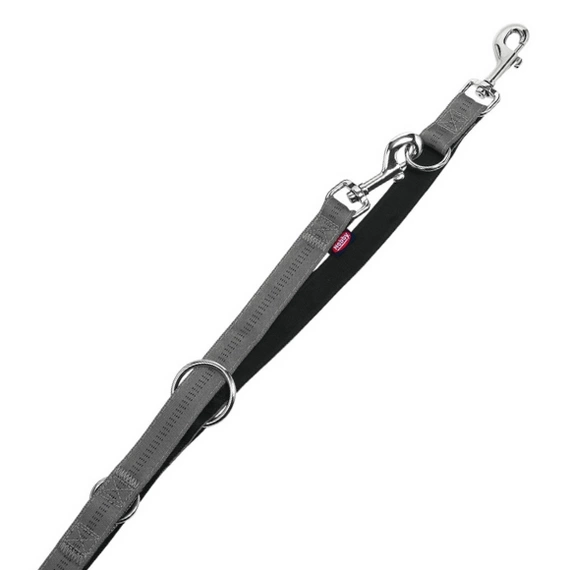 Smycz dla psa wykonana z taśmy nylonowej. Konstrukcja smyczy umożliwia regulację długości, co zwiększa komfort spaceru oraz kontrolę nad psem. Mocny karabińczyk pozwala na szybkie przypięcie smyczy zarówno do obroży, jak i do szelek.