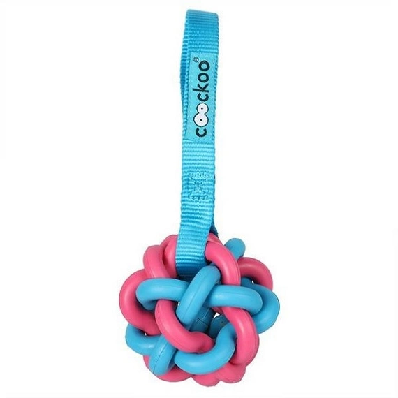- Zabawka umieszczona na miękkiej taśmie - ułatwia rzucanie, noszenie zabawki lub może służyć jako dodatkowa część gryzaka