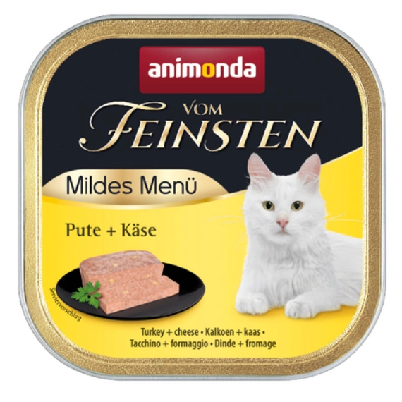 Animonda Vom Feinsten Mildes Menu karma dla dorosłych kotów indyk z serem tacka 100g