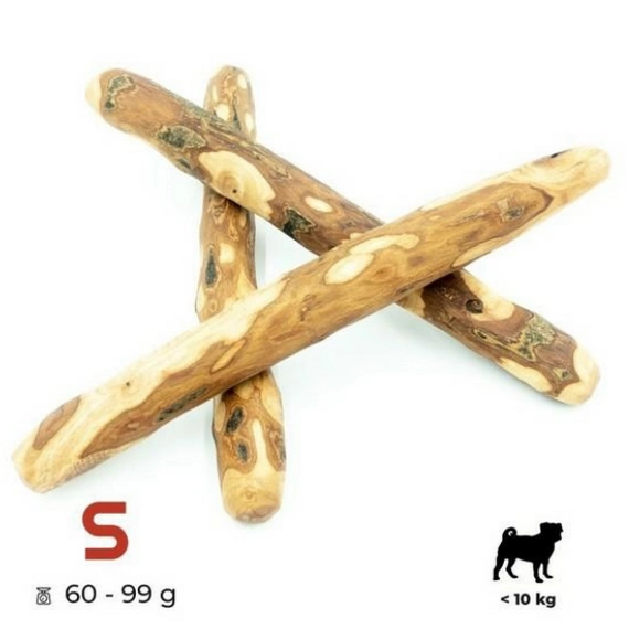 Patyk z drzewa oliwnego to doskonała zabawka - przysmak, który nie tylko zajmie Twojego psa dając mu radość z gryzienia i żucia, jednocześnie zaspokajając naturalne potrzeby psów. Długotrwałe gryzienie przyczyni się do mechanicznego czyszczenia zębów, dzięki naturalnemu ścieraniu osadu nazębnego oraz kamienia.