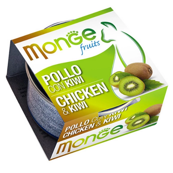Karma Monge Fruit Chicken Kiwi zaspokaja potrzeby żywieniowe dorosłych kotów. Charakteryzuje się wysoką wartością odżywczą, przy jednoczesnej niskiej zawartości tłuszczu.