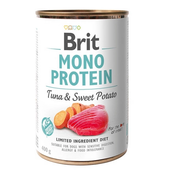 - Brit Monoprotein tuńczyk, bataty karma dla psów z wrażliwym, przewodem pokarmowym, alergią i nietolerancją pokarmową. Karma z tuńczykiem i słodkimi ziemniakami.