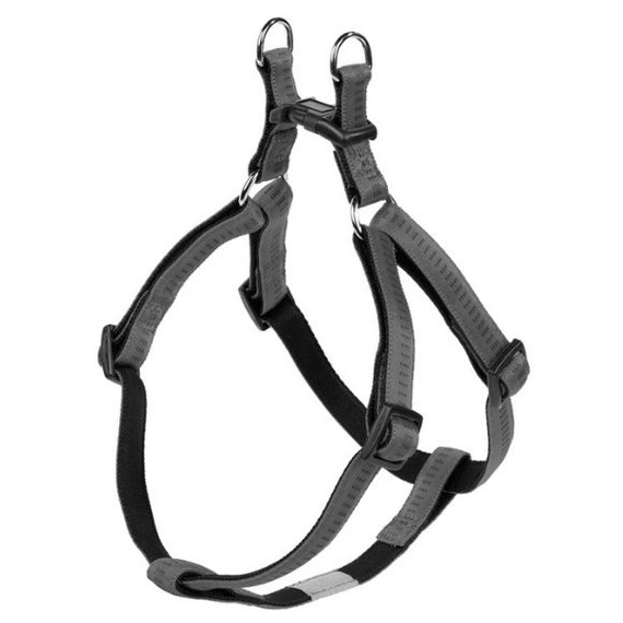 Szelki dla psa wykonane z miękkiej i wytrzymałej taśmy nylonowej. Dodatkowym zabezpieczeniem, gwarantującym wygodę użytkowania jest miękkie podszycie taśmy od środka. Konstrukcja szelek zapewnia możliwość dostosowania długości pasków do indywidulanych wymiarów psa. Plastikowe klamry umożliwiają skrócenie szelek i dopasowania do obwodu klatki piersiowej.
