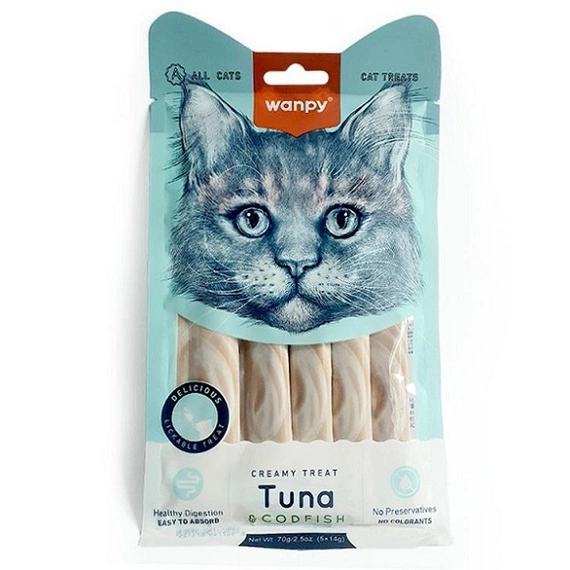 Wanpy krem z tuńczykiem i dorszem 70g przysmak dla kota
