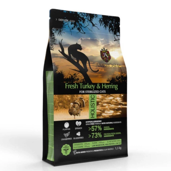 Ambrosia Light Indyk i Śledź - sucha karma dla kotów z nadwagą, po sterylizacji i seniorów 1,5kg