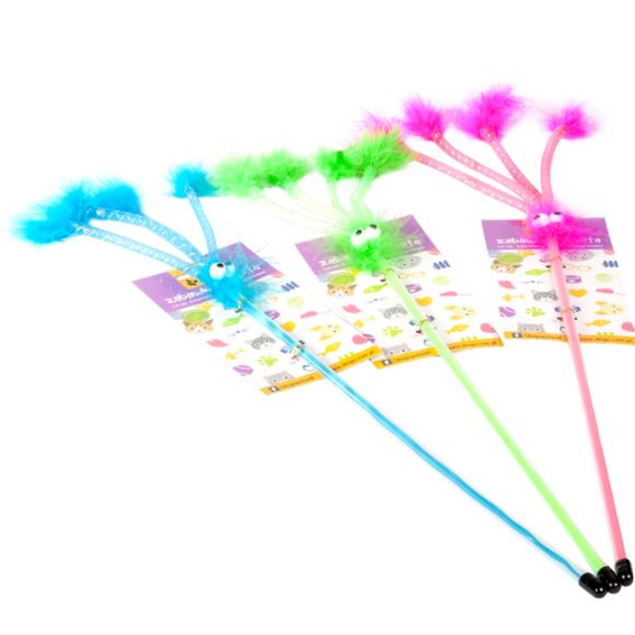Zabawka dla kota, która pozwoli na wspólna zabawę opiekuna i kota. Stworek umieszczony na końcu patyczka przyciągnie uwagę każdego kota. Jego elastyczne czułki poruszają się przy każdym ruchu wędką, prowokując kota ruchem zwiewnych piórek. Dodatkową zachętą do działania jest dźwięk dzwoneczków umieszczonych wewnątrz czułków zabawki.