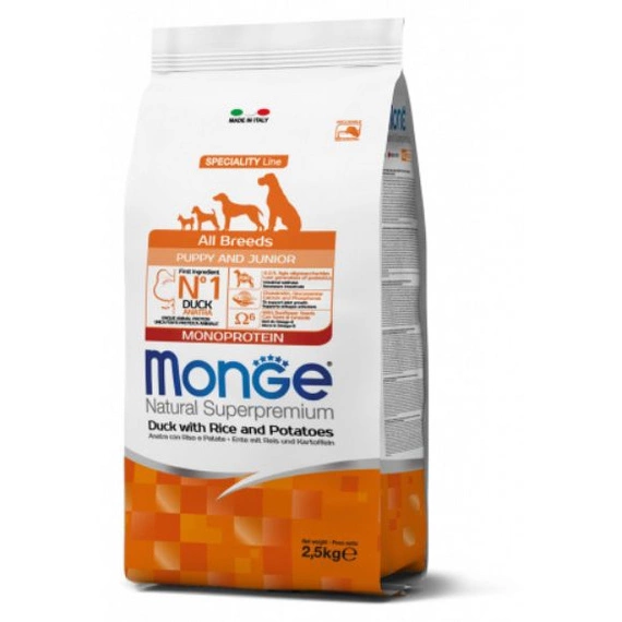 Charakterystyka karmy Monge Puppy Monoprotein Duck Rice and Potatoes dla szczeniąt wszystkich ras: