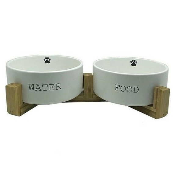Dla wygody użytkowania miski umieszczone są na niewysokim drewnianym stojaku, który nie tylko dodaje im elegancji, ale także zapewnia stabilność podczas posiłków Twojego psa. Prostota wzornictwa sprawia, że zestaw pasuje do każdego wnętrza, dodając mu przyjemny akcent naturalnego uroku.