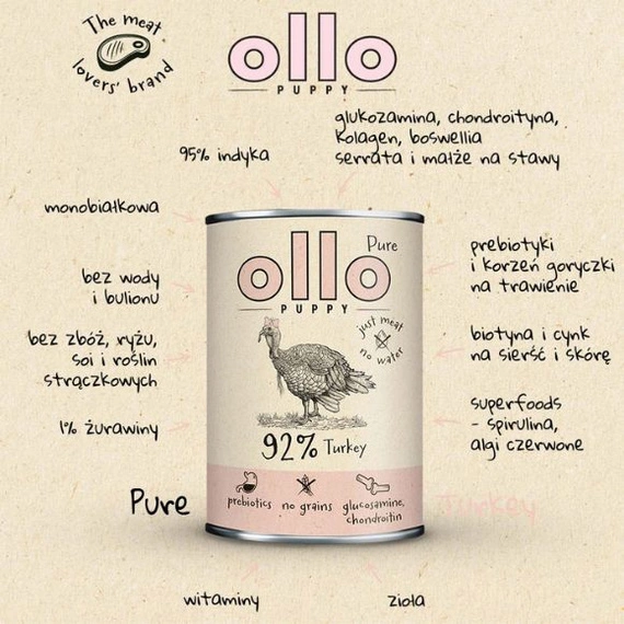 Charakterystyka karmy Ollo Pure Turkey: