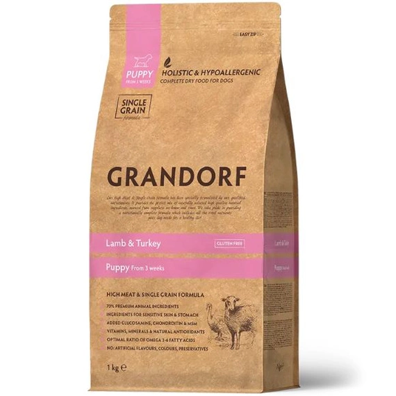 Grandorf Puppy Lamb & Turkey pełnowartościowa, hipoalergiczna, sucha karma dla szczeniąt wszystkich ras.