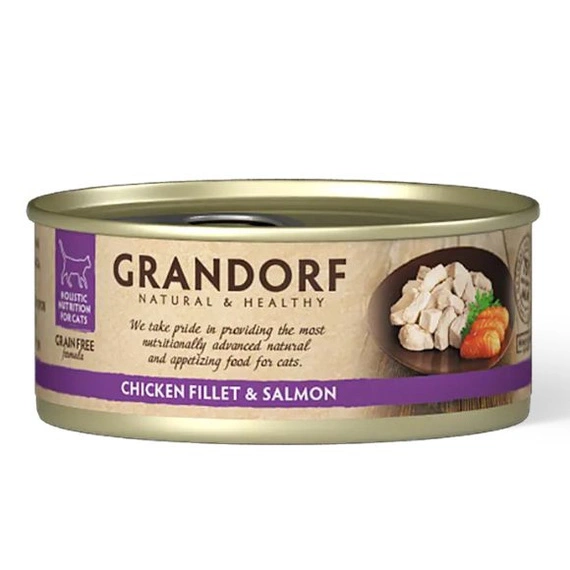 Grandorf Filet z piersi Kurczaka i Łososiem puszka 70g mokra karma dla kotów