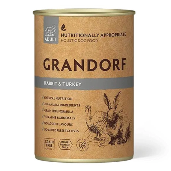 Grandorf mokra karma dla psów dorosłych Królik i Indyk puszka 400g