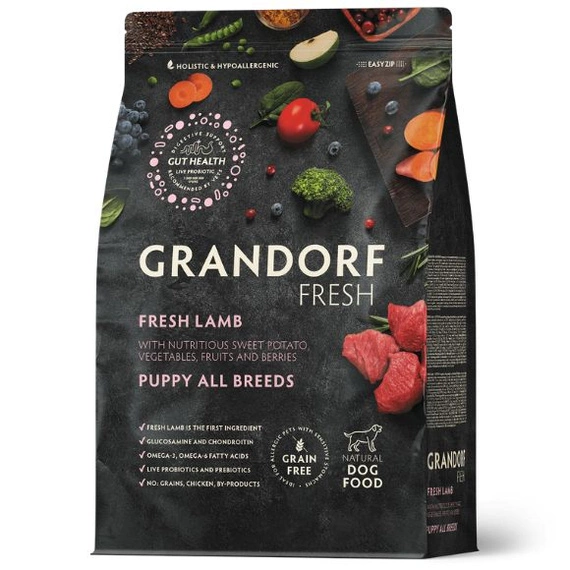 Zadbaj o zdrowy start w życie Twojego pupila – postaw na Grandorf Fresh Puppy Lamb – hipoalergiczną karmę dla szczeniąt z probiotykami i jagnięciną.