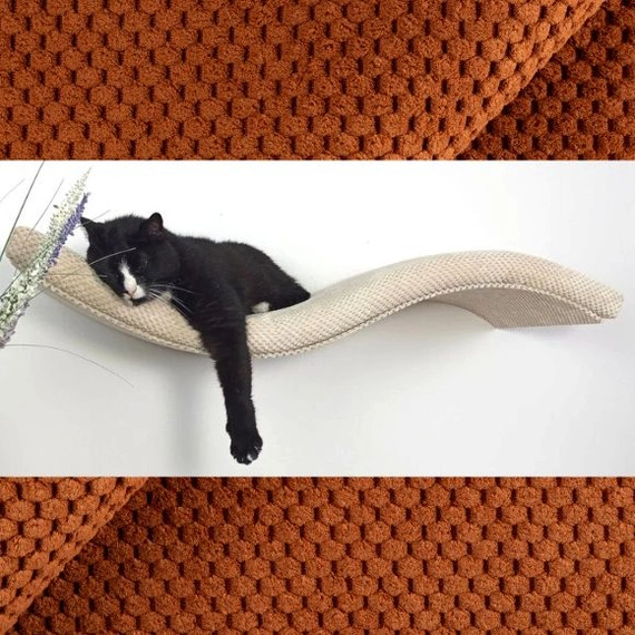 • Nowoczesna półka ścienna dla kota o kształcie fali – idealna do wspinaczki, odpoczynku i obserwacji. Stabilna konstrukcja, kolor ceglany brąz, długość 75 cm.