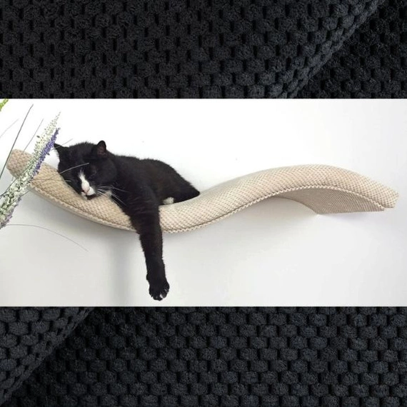 • Nowoczesna półka ścienna dla kota o kształcie fali – idealna do wspinaczki, odpoczynku i obserwacji. Stabilna konstrukcja, kolor czarny, długość 75 cm.