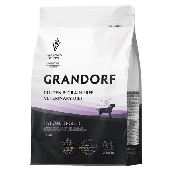 Grandorf Veterinary Diet Dog Hypoallergenic Rabbit to skuteczna i bezpieczna karma weterynaryjna wspierająca psy z alergiami i nietolerancjami pokarmowymi – łagodna dla przewodu pokarmowego, przyjazna dla skóry i zdrowia całego organizmu.