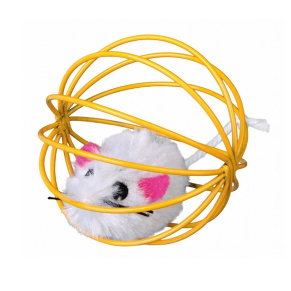Mała myszka, wykonana z miękkiego materiału. Zamknięta w kuli z drutu - klatce. Będzie uciekała przed kotem za każdym razem, gdy ten spróbuje złapać zabawkę. Wewnątrz myszki umieszczono dzwonek, którego odgłos dodatkowo będzie prowokował kota do polowania.