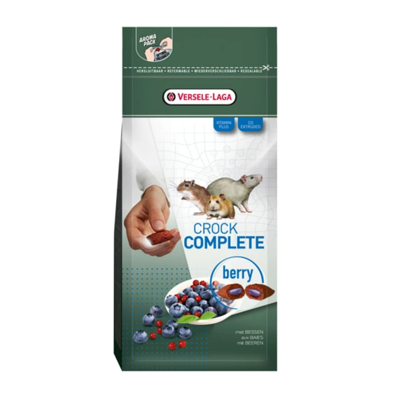 - Versele Laga Crock Complete to przysmak dla królików, świnek morskich, chomików, koszatniczek i szynszyli. Niewielkie ciasteczka o kruchej warstwie zewnętrznej z płatków zbożowych są wypełnione nadzieniem o smaku jagodowym.