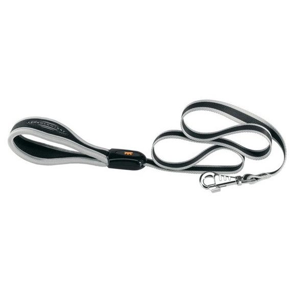 - Szaro-czarna, wygodna smycz z taśmy nylonowej, z ergonomiczną, elegancką rączką.