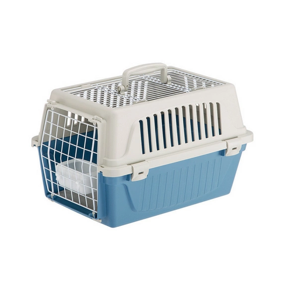 Transporter Atlas Open 10 zaprojektowano dla kotów i małych psów. Łatwy do przenoszenia dzięki stałym ergonomicznym uchwytom. Pozwala na transport kota lub małego psa we wszystkich środkach transportu. Wykonany jest z tworzywa sztucznego, posiada solidne frontowe stalowe drzwi. Drugie drzwiczki znajdują się w górnej części transportera i pozwalają na łatwy dostęp do przewożonego zwierzęcia. W górnej części transportera znajdują się kratki, które pozwalają na swobodną cyrkulację powietrza.