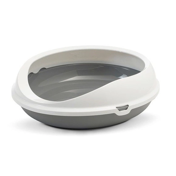 Owalna, otwarta kuweta dla kota. Wyposażona w ramkę zabezpieczającą żwirek przed wysypywaniem.